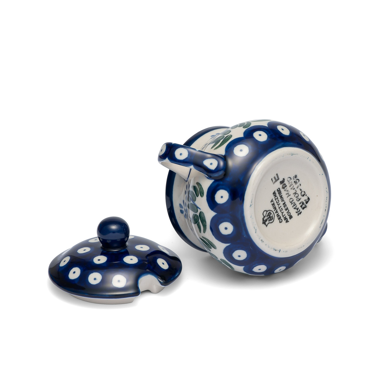 Każda sztuka jest sygnowana na spodzie stemplem z logo i nazwą Ceramiki Artystycznej Bolesławiec oraz inicjałami i numerem osoby malującej, co stanowi gwarancję autentyczności oraz ręcznego wykonania.