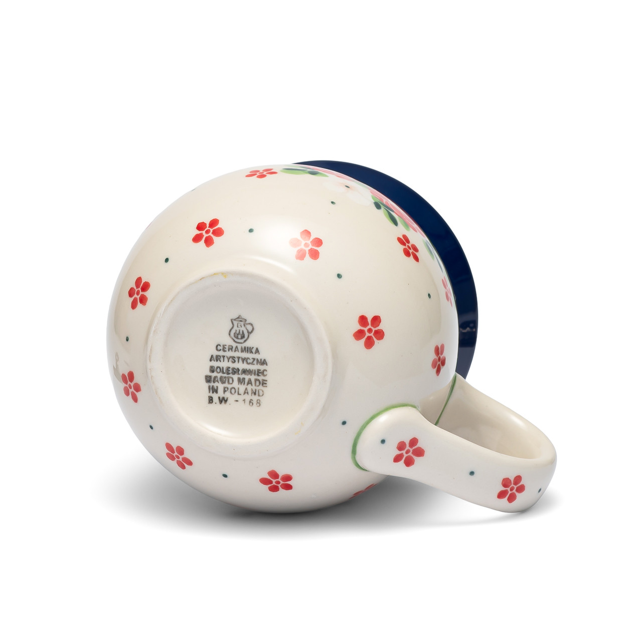 Każda sztuka jest sygnowana na spodzie stemplem z logo i nazwą Ceramiki Artystycznej Bolesławiec oraz inicjałami i numerem osoby malującej, co stanowi gwarancję autentyczności oraz ręcznego wykonania.
