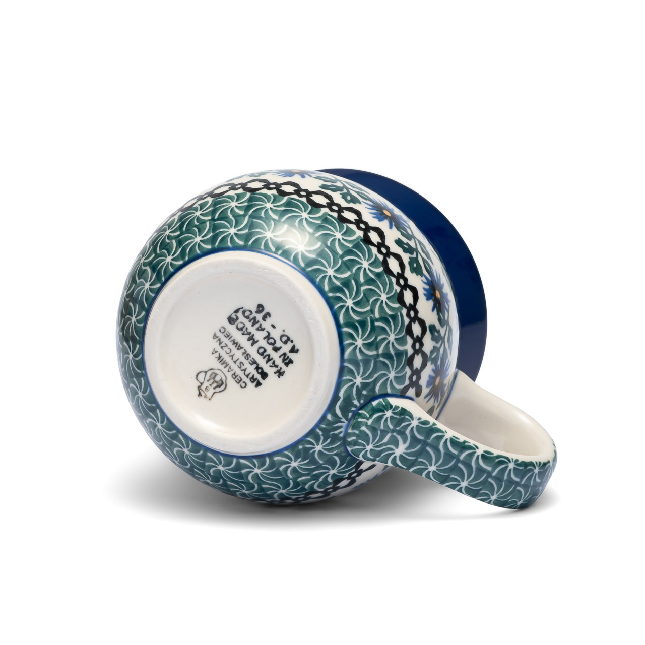 Każda sztuka jest sygnowana na spodzie stemplem z logo i nazwą Ceramiki Artystycznej Bolesławiec oraz inicjałami i numerem osoby malującej, co stanowi gwarancję autentyczności oraz ręcznego wykonania.