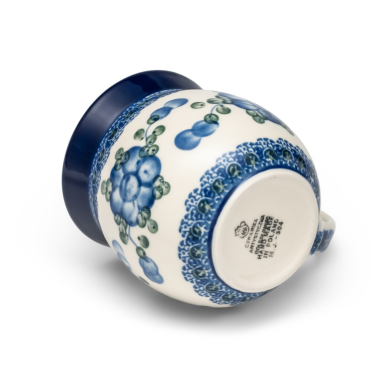 Każda sztuka jest sygnowana na spodzie stemplem z logo i nazwą Ceramiki Artystycznej Bolesławiec oraz inicjałami i numerem osoby malującej, co stanowi gwarancję autentyczności oraz ręcznego wykonania.